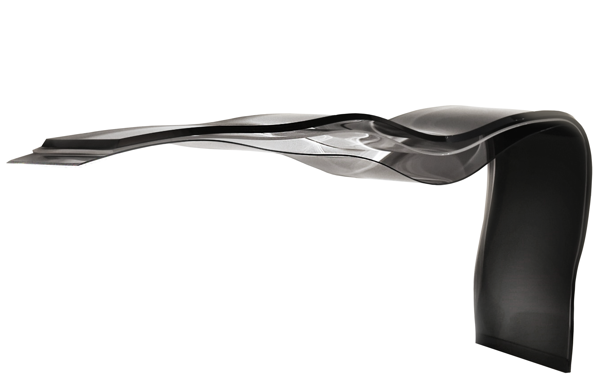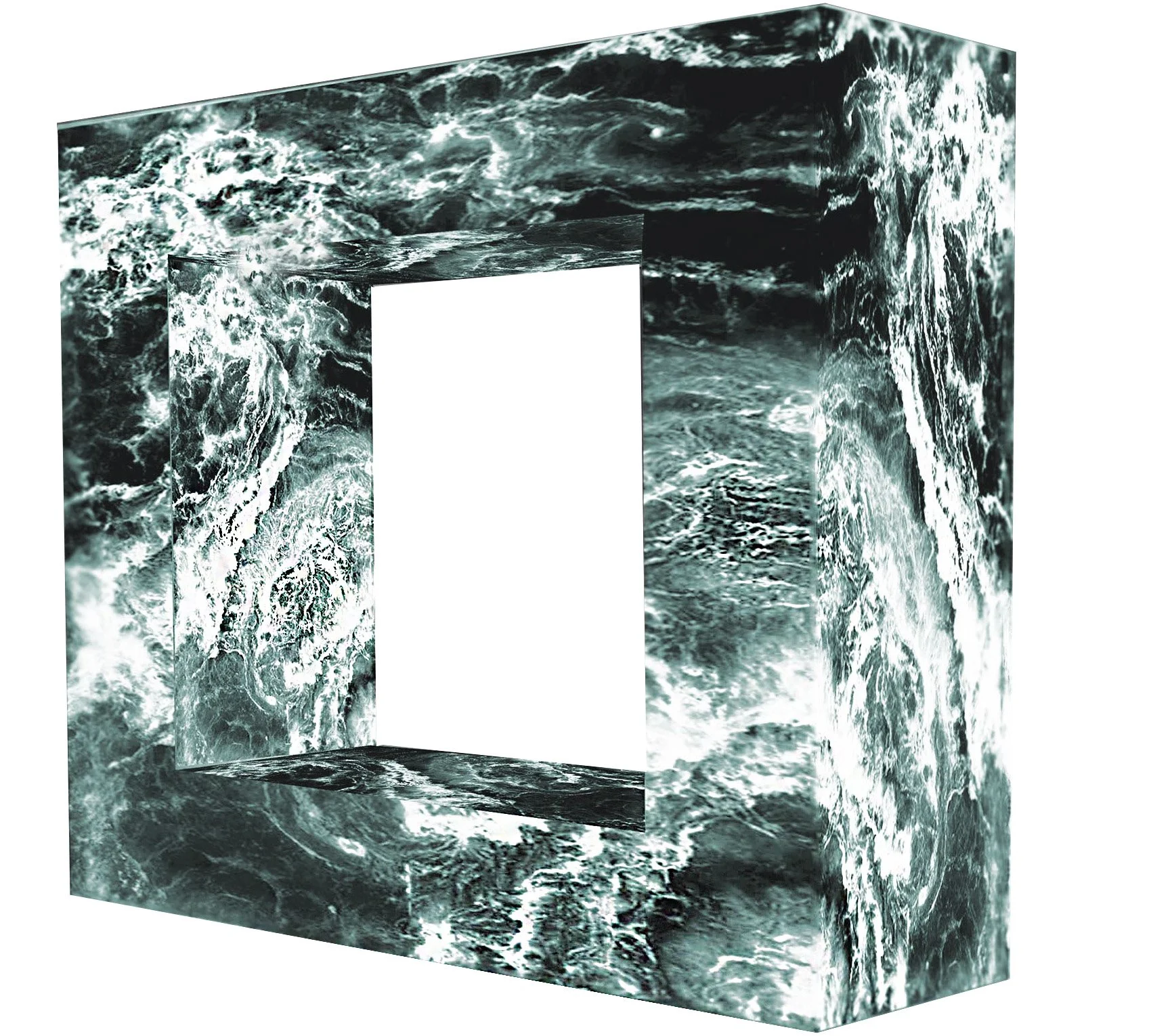 The force of the sea lives in the geometry of engraved glass, silent and tense.