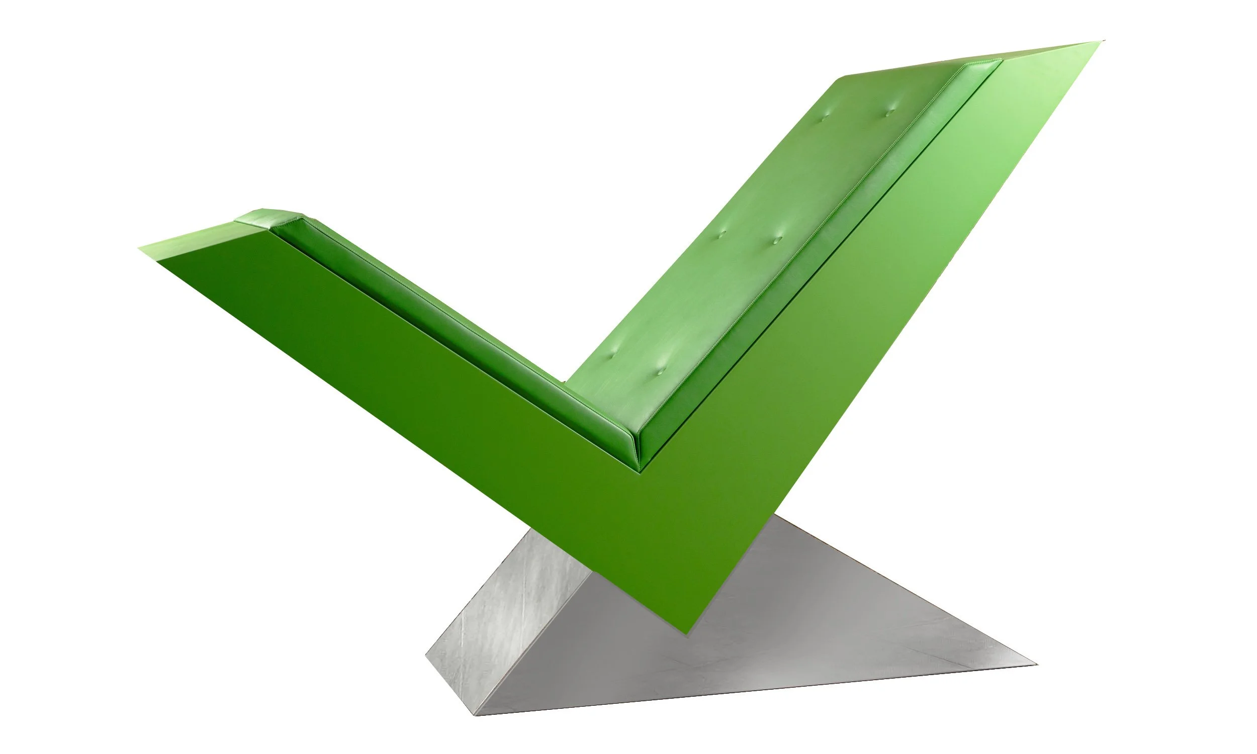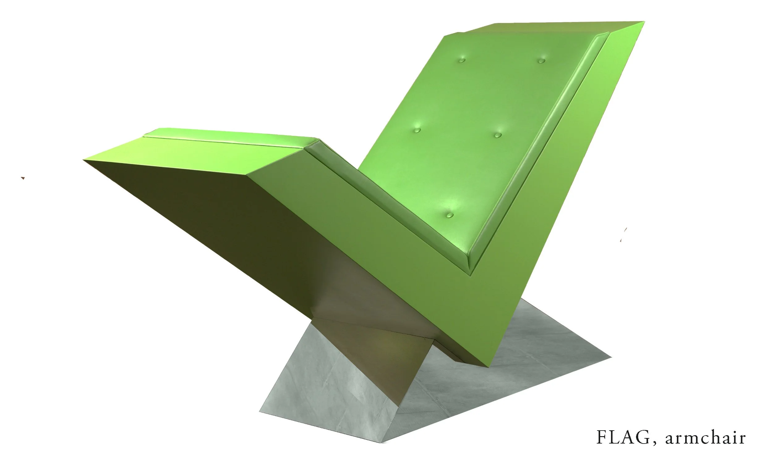 The determined design, the daring geometry, and the vibrant green stimulate dialogue between identity and contemporary living. Every line is carefully studied to offer comfort and inspiration, inviting the sitter to experience their environment as a creative, personal, and unique space.