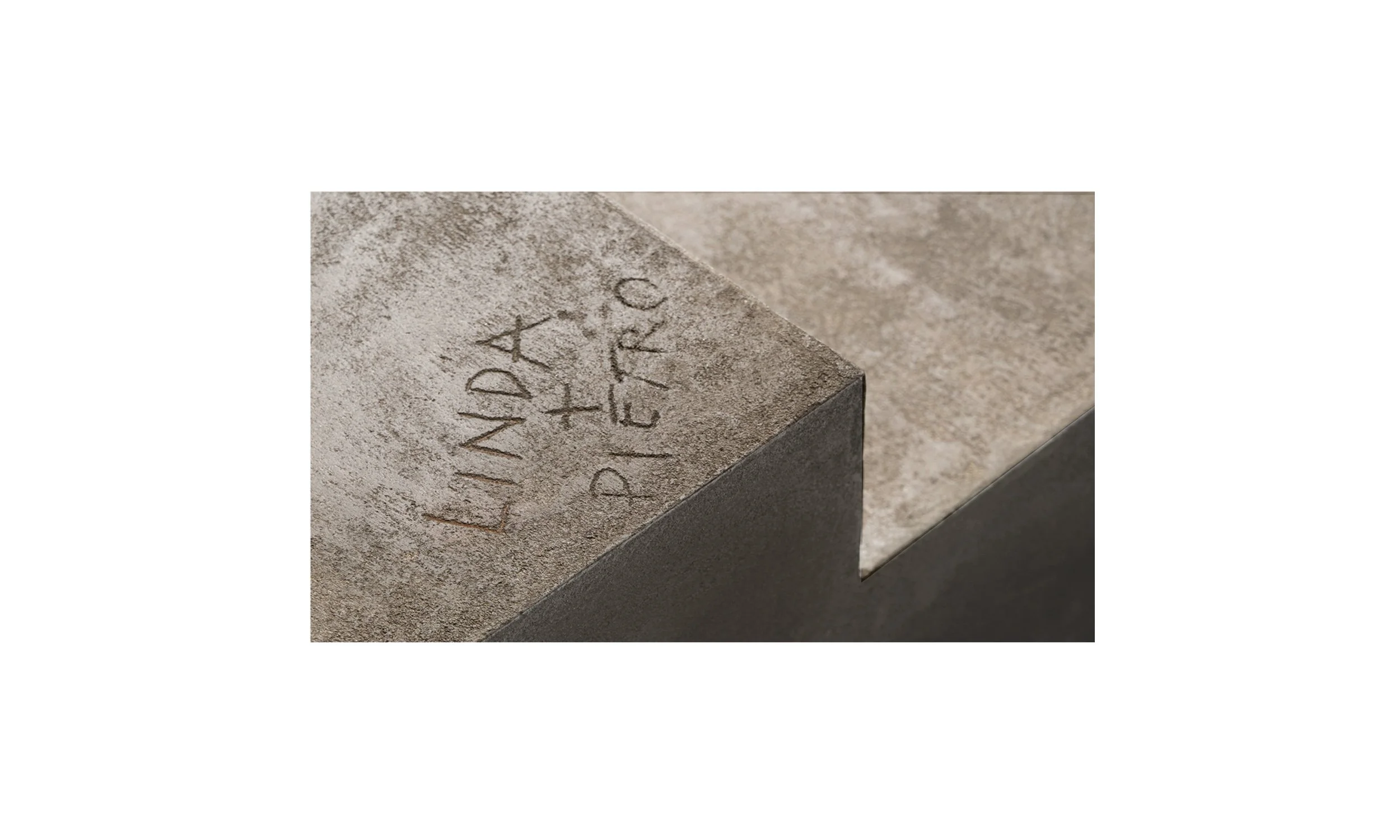On the rough stone appear naive graffiti — like that young love, "LINDA + PIETRO," written in haste, stubborn as concrete, ready to resist weather and the passage of time. Friendship preserves the magic of everyday life, where affection grows freely and every step tells a story. The dream of growing up together: climbing, laughing, living.