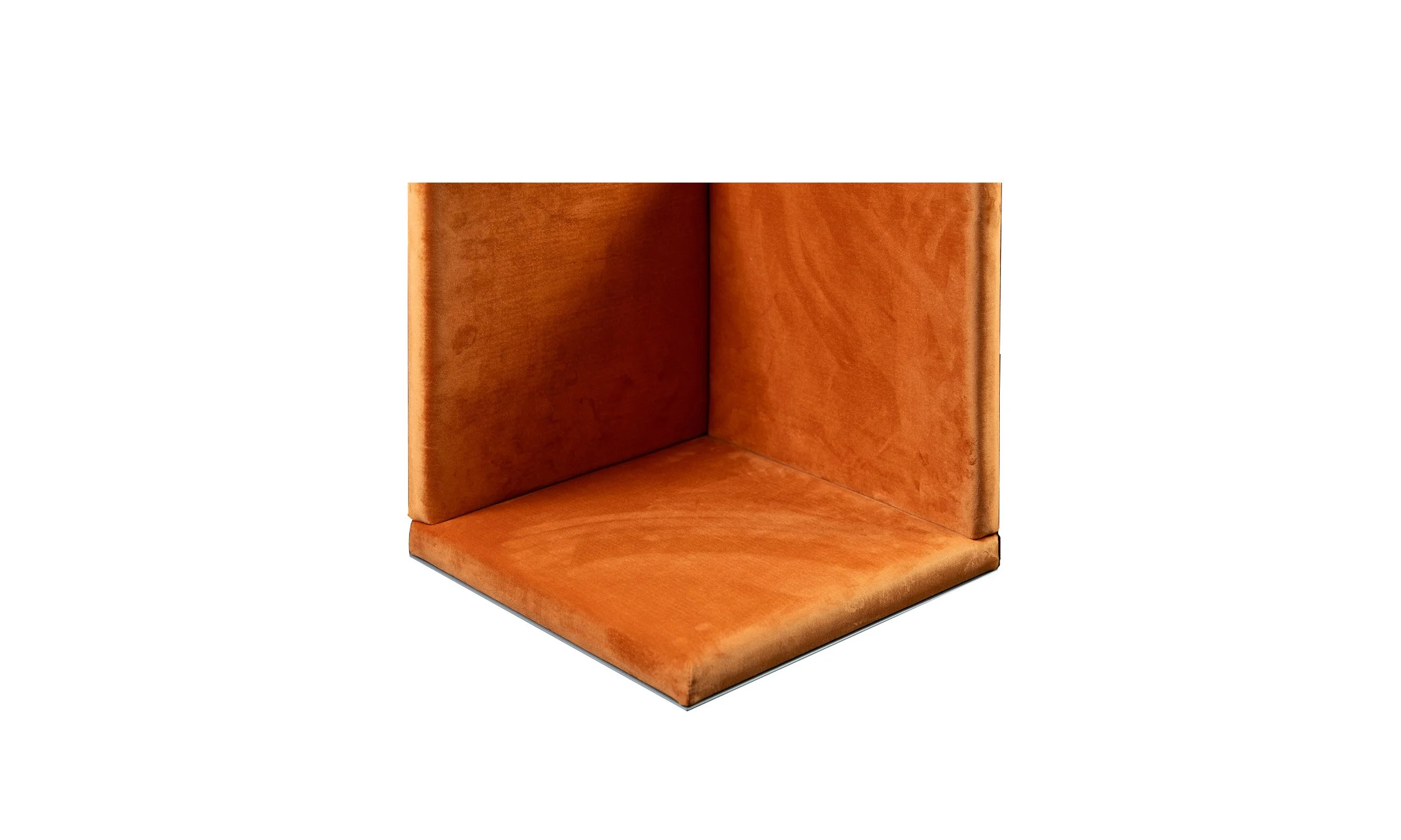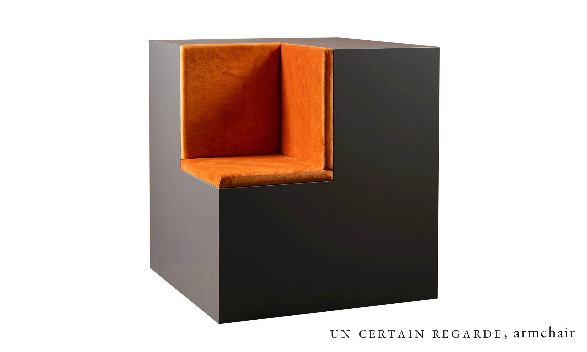 1.Un Certain Regard — Sitting is never a neutral gesture. It is a pause, a choice, a way of inhabiting space. Un Certain Regard transforms this act into an experience of possession and contemplation: the body welcomed, enveloped, almost swallowed by the monolithic form — only to be given back a new gaze upon the world. The sculptural volume, essential in its solidity, conceals an intimate niche lined with precious orange velvet that caresses, delicately grazing the senses. Produced in only 15 numbered editions, Un Certain Regard combines sculptural rigor with the sensoriality of design. A refined gaze for the few: You.